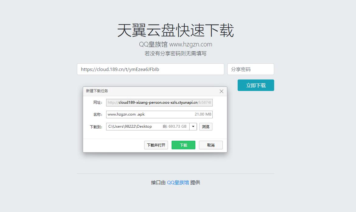 虽然天翼云盘下载不限速,但是每次下载都需要登录比较麻烦,于是做了这个东西;HTML单页,直接上传就能用!