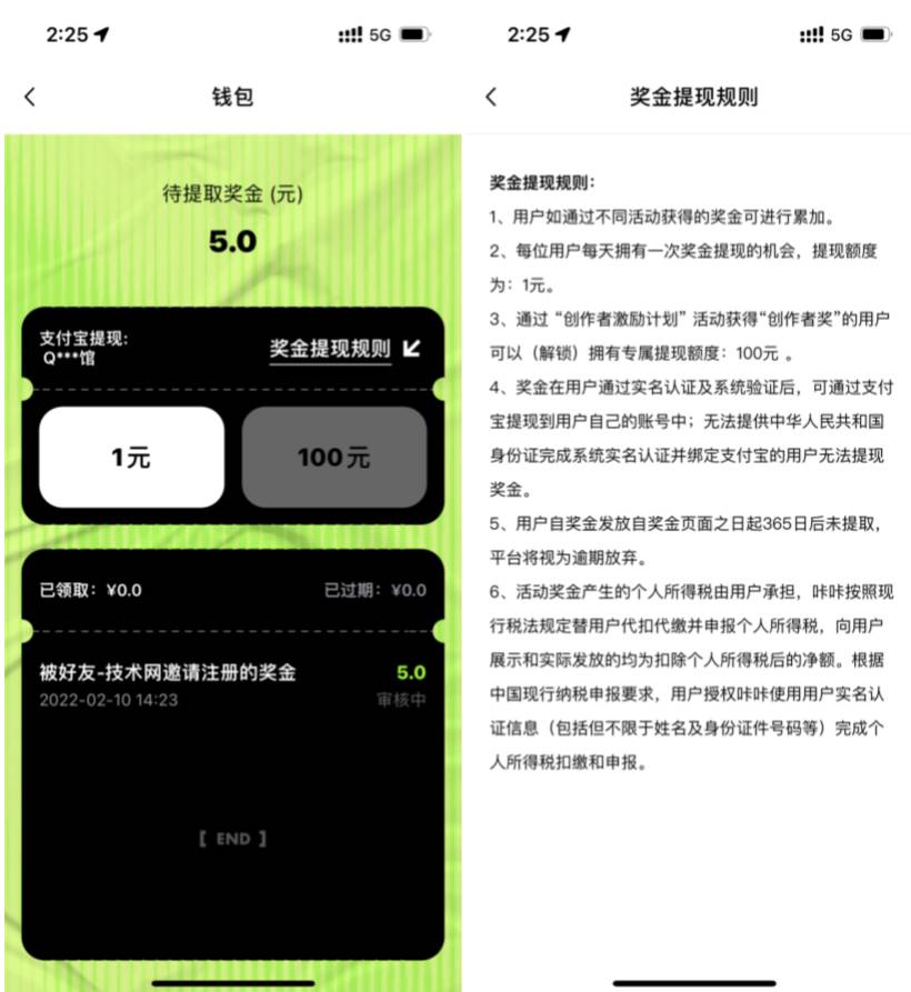 打开咔咔APP在【我的】右上角邀请码,输入:F49S0L1 领取5元奖金奖励