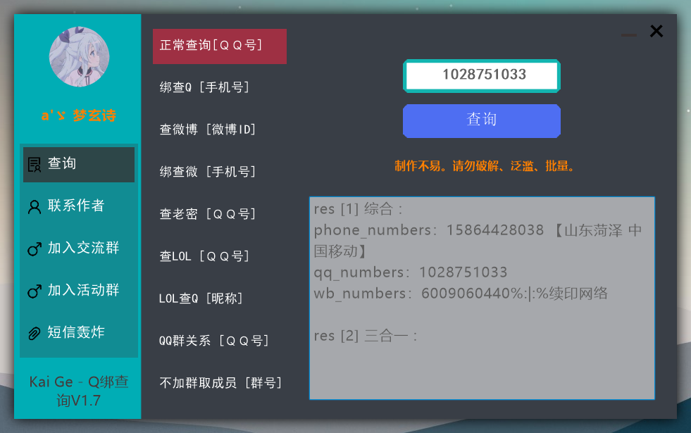 本次为大家分享的是Kai Ge - Q绑查询v1.7 杜工查询