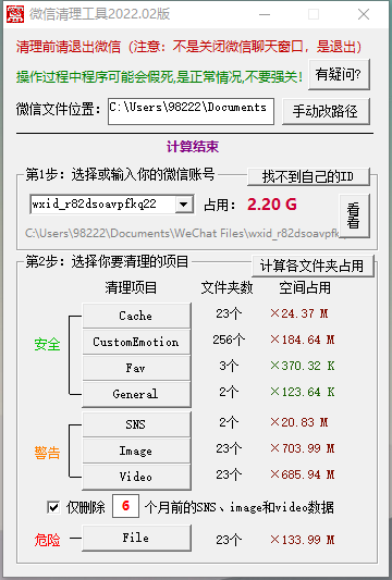 本次为大家分享的是微信垃圾文件/缓存清理工具v2022.02